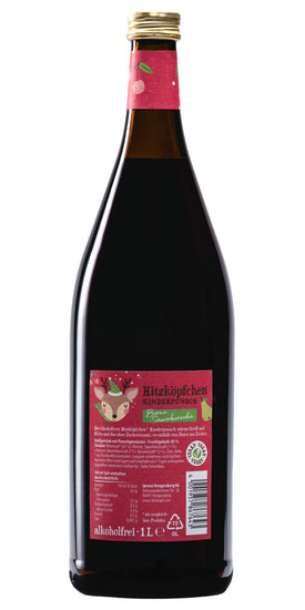 • Kinderpunsch Birne-Sauerkirsche von Hitzköpfchen, alkoholfrei, fruchtig-mild mit 40 % weniger Zucker.